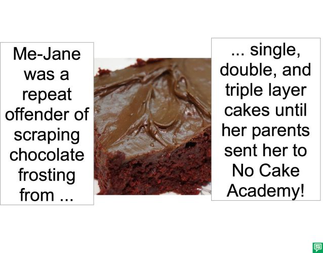 ME-JANE WENT TO NO CAKE ACADEMY