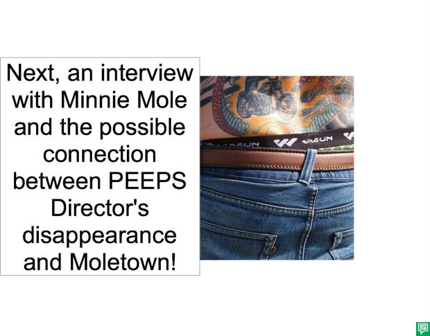 Posted in PEEPS DIRECTOR DISAPPEARS INTO GNIFLOG SAND TRAP!