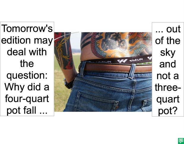 Posted in FOUR QUART POT FALLS OUT OF THE SKY AND WHACKS NOD PMURT ON THE HEAD!