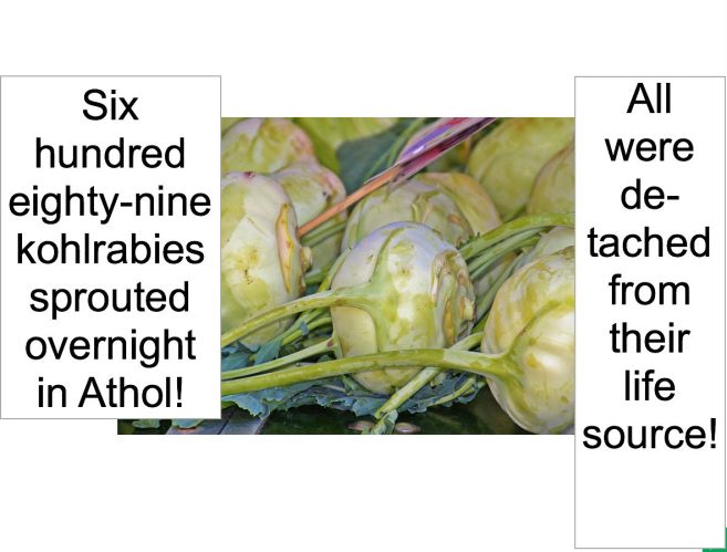 Posted in STATE OF EMERGENCY DECLARED, 689 KOHLRABIES AIRLIFTED OUT OF ATHOL!