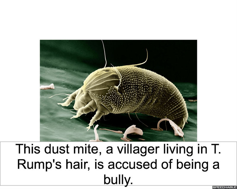 Fights Have Broken Out in Dust Mite Village Located in T. Rump’s Hair, Delaying T. Rump’s Arrival in Athol!